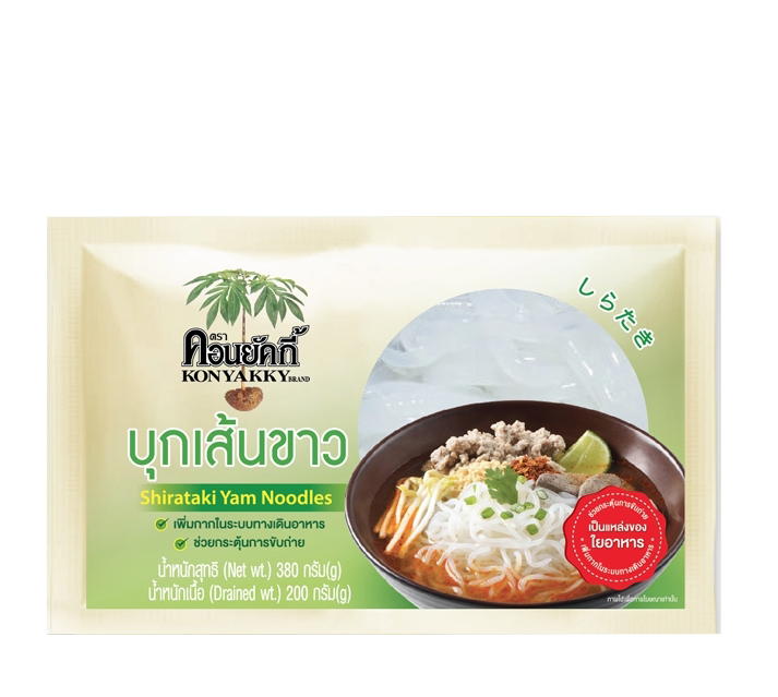 Has selected quality natural products that are useful rich in dietary fiber, glucomannan, calcium, iron, can be used in a variety of cooking such as Thai, Chinese, Japanese and European food. According to your favourite style, bring it boiled, fried, suki, tom yum or salad, or to make desserts suitable for people who want to control weight and looks healthy.